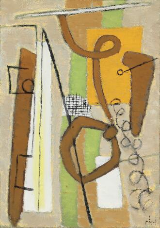 2549/737Wiliam Skotte Olsen: Untitled. Signed WSO. Oil and watercolour on paper. Sheet size 51 x 76 cm. Unframed.