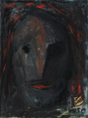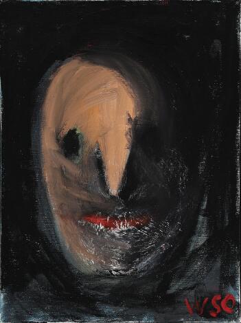 2549/816Arne Haugen Sørensen: "Petit Mort / Grande Mort". Signed A. Haugen Sørensen. Oil on canvas. 100 x 81 cm.