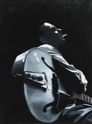 2549/619Erik Rasmussen: "Duke Ellington/Billy Strayhorn", 1997. Signed Erik Rasmussen on the reverse. Acrylic on canvas. 84 x 63 cm.