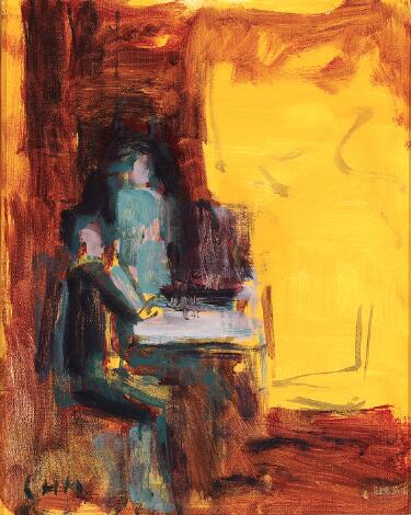 2549/559Sven Havsteen-Mikkelsen: “Emmaus,” 1996. Signed SHM. Oil on canvas. 40 x 32 cm.