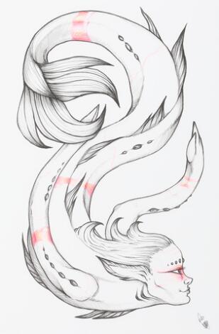 2548/9079AarhusMaria Bach Kreutzmann: Mythical creature, 2023. Signed and dated. Handcoloured lithograph. Sheet size 56 x 38 cm.