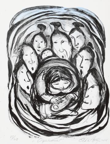 2548/9062AarhusAka Høegh: "Angalaneq", 2024. Signed and dated. Lithograph. Sheet size 87 x 61 cm. Unframed.