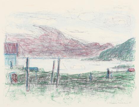 2548/9046AarhusKirsten Rose: Sceneries from Godthaab, 1967. Signed and dated. Crayon on paper. 14.5 x 20.5 cm. Unframed. (2)