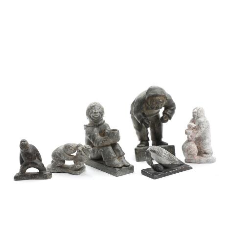 2548/9071AarhusDorthe Kristoffersen, Simon Kristoffersen, Therkild Josefsen, a.o.: A collection of soapstone figures. Partly signed. H. 9-17 cm. (6)