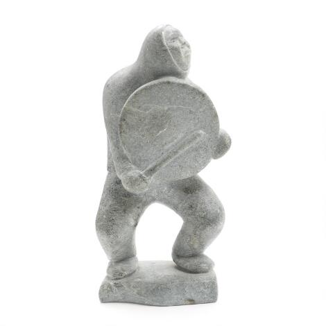 2548/9076AarhusSimon Kristoffersen: A carved soapstone figure in the shape of drummer. Signed Simon. H. 23 cm.