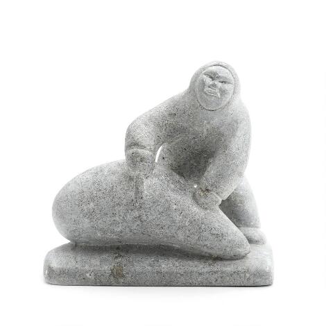 2548/9073AarhusKarl Kristoffersen: A carved soapstone figure in the shape of hunter and seal. Signed Karl K. H. 20 cm.