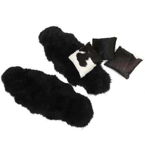332/93LyngbyTre puder af sort skind/ponyskind og to sorte lammeuld. (5)