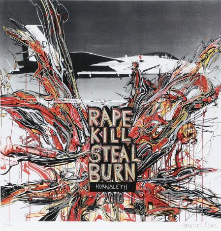 332/82LyngbyKristian von Hornsleth: "Rape Kill Steal Burn", 2012. Grafisk print i farver. Lysmål 59 x 49 cm.