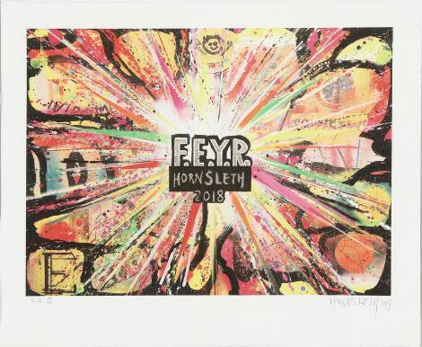 332/70LyngbyKristian von Hornsleth: "F.E.Y.R", 2018. Signeret Hornsleth. Grafisk print i farver. Bladstørrelse 46 x 56 cm.