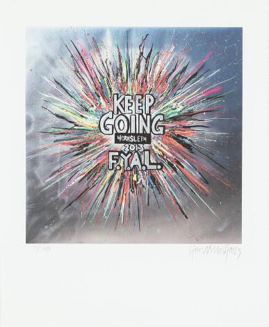332/116LyngbyKristian von Hornsleth: "KEEP GOING", 2013. Signeret Hornsleth 2023. Grafisk print i farver. Bladstørrelse 56 x 46 cm.