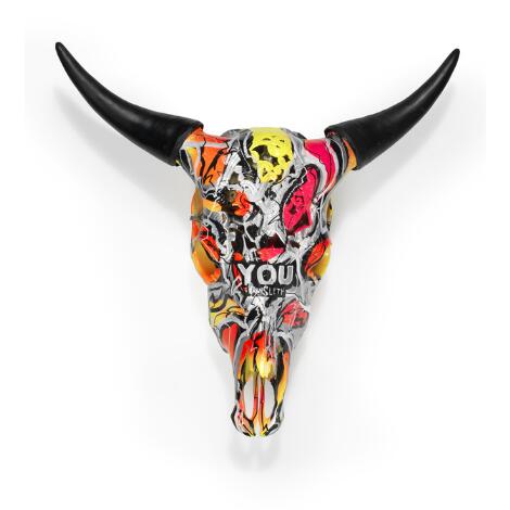332/89LyngbyKristian von Hornsleth: "You". Signeret Hornsleth. Polykromt bemalet kranie med plastik. 48 x 61 x 16 cm.