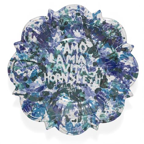 332/83LyngbyKristian von Hornsleth: "Amo Lamia Vita", 2017. Signeret Hornsleth. Bemalet fad. Diam. 41 cm.