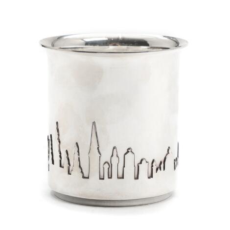 2550/704A. Michelsen: Sterling silver cup enchased with Copenhagen skyline. H. 7 cm.