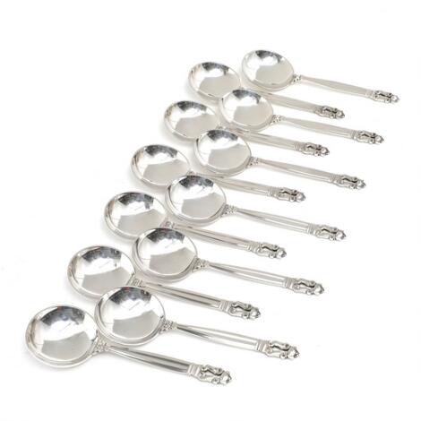 2550/679Johan Rohde: "Acorn". 12 sterling silver bouillon spoons. Georg Jensen, after 1945. (12)