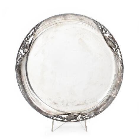 2550/765Harald Nielsen: "Pyramid". Circular sterling silver tray with two handles. L. 37.2 cm.