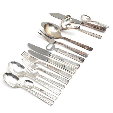 2550/684Karl Gustav Hansen: "Linje". Sterling silver cutlery set. (87)