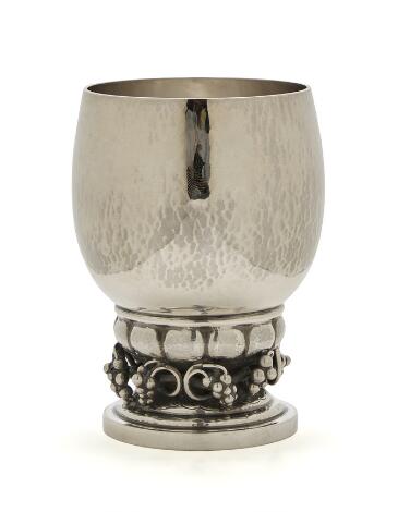 2550/719Georg Jensen: A sterling silver wine goblet with hammered surface, stem with relief grapes. H. 10 cm.