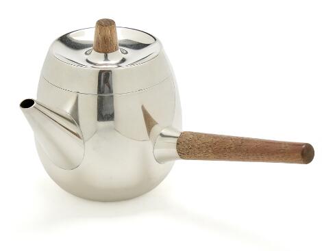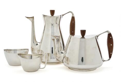 2550/716Søren Sass: A sterling silver coffee and tea set. Teak handles and finals with bone inlays. (4)