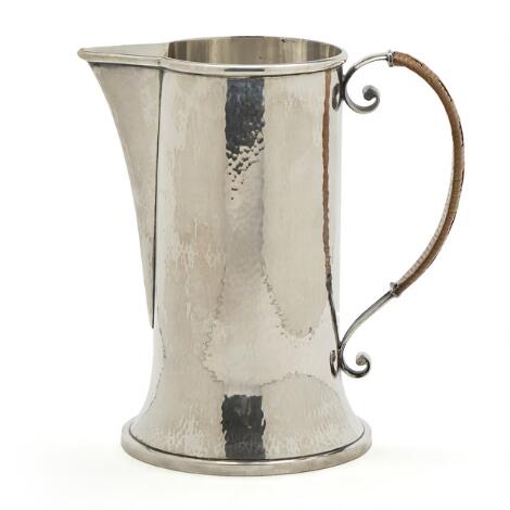 2550/683Karl Gustav Hansen: A sterling silver pitcher with hammered surface. Handle with patinated wicker. H. 15.5 cm.
