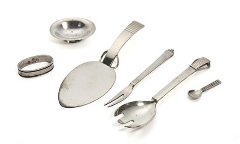 2550/737Oscar Gundlach-Pedersen, Harald Nielsen, Sigvard Bernadotte, a.o.: Various sterling silver serving pieces, a napkin ring and a salt cellar. (5)
