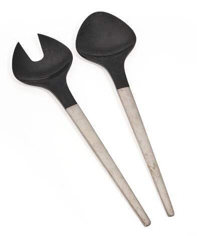 2550/707Henning Koppel: "Caravel". Salad set with sterling silver handles. The upper part with black melamine. L. resp. 28.7 and 29.3 cm.