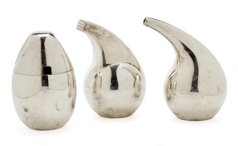 2550/729Søren Georg Jensen: A sterling silver cruet set comprising a salt- and pepper shaker and a mustard pot. (3)