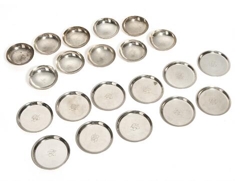 2550/71212 silver glass coasters and 10 silver ashtrays. (22)