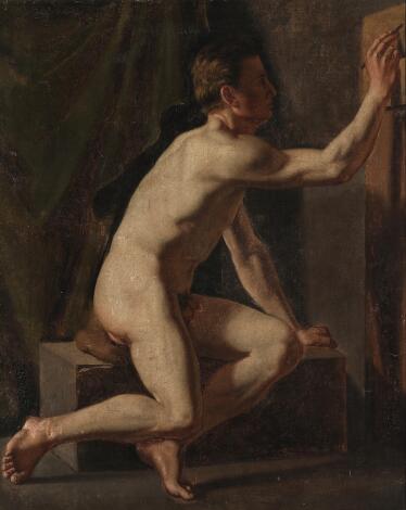 2551/85LyngbyDansk guldaldermaler, 19. årh.s første halvdel: En mandlig model. Usigneret. Olie på lærred. 64 x 51 cm.