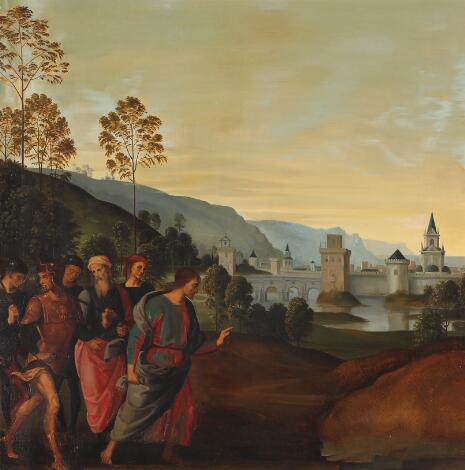 2551/34AarhusHarald Slott-Møller, efter Perugino: "Jesus i Getsemane", 1910. Signeret. Olie på lærred. 78 x 76 cm.