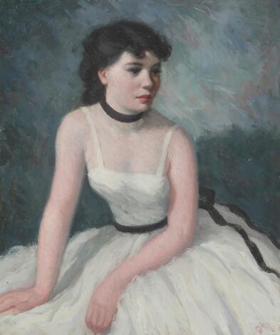 2551/88AarhusHelge Helme: Ballerina. Signeret H. Helme. Olie på lærred. 55 x 46,5 cm.