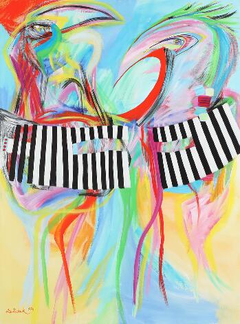2551/545AarhusLis Zwick: "Dragspelarna II", 1991. Signed and dated Lis Zwick, Ur resa i Mexico 1991. Oil on canvas. 130 x 97 cm.
