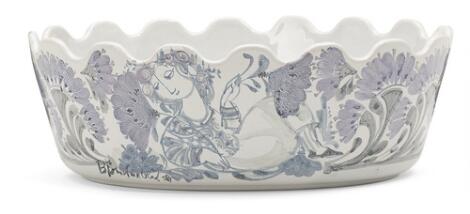 2551/513LyngbyBjørn Wiinblad: An earthenware bowl modeled in oval shape with lobed top rim. Signed Bjørn Wiinblad 81. L. 38 cm.