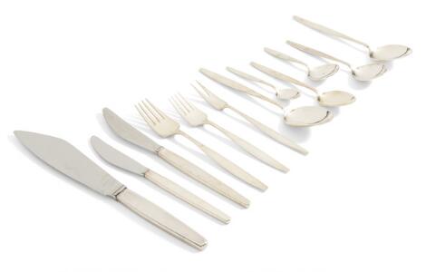 2551/558LyngbyTias Eckhoff: "Cypres". Sterling silver cutlery. Georg Jensen after 1945. Weight excl. steel pieces 2873 g. (104)