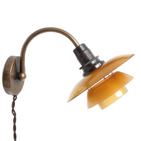 2551/518AarhusPoul Henningsen: "PH-1/1". Browned brass wall lamp with amber coloured glass shades.