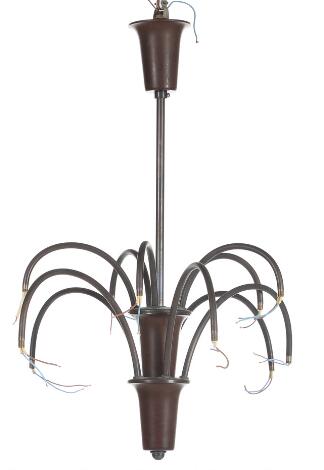 2551/539AarhusPoul Henningsen: "PH-bombardement". Ten-arm, two-tier frame of patinated brass and bakelite. 1930s. Made by Louis Poulsen. H. 66 cm.