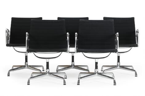 2551/521AarhusCharles Eames, Ray Eames: “Aluminium Group”. Set of five swivel armchairs with aluminium frame. Upholstered with black hopsak. Manufactured by Vitra. (5)