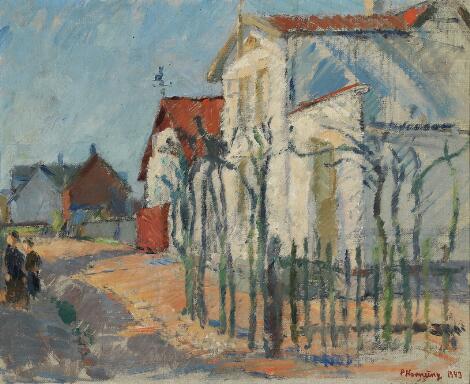 2551/634LyngbyPreben Hornung: "Afholdshotellet". Signed P. Hornung 1943. Oil on canvas. 28 x 34 cm.