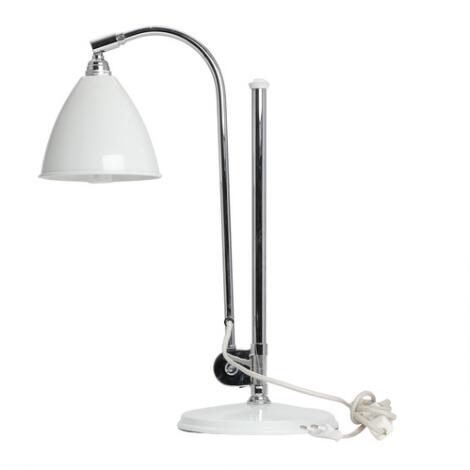2551/671AarhusRobert Dudley: "Bestlite". Table lamp of chromed metal. Shade and base of white lacguered metal. H. 52-85 cm.