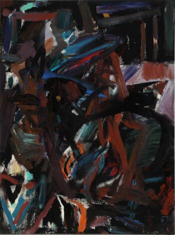 2551/681LyngbyBentemarie Kjeldbæk: Untitled, 1995. Signed and dated on the reverse. Oil on canvas. 128 x 85 cm. Unframed.