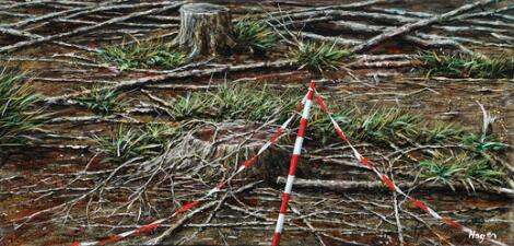 2551/656LyngbySøren Hagen: Untitled. Signed Hagen. Oil on board, edges is thick paper laid on board. 29 x 51 cm.