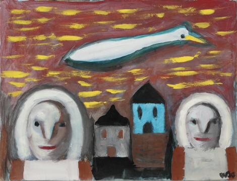 2551/663LyngbyWiliam Skotte Olsen: Untitled. Signed WSO. Oil and watercolour on paper. Sheet size 50 x 65 cm. Unframed.
