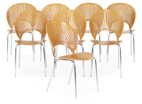 2551/648LyngbyNanna Ditzel: "Trinidad". Set of eight steel chairs. Cherry wood seat and back. (8)
