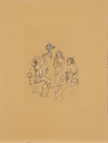 2551/652LyngbyLeonor Fini: Two compositions. Both signed. Etchings in colours. Sheet size 68 × 52 and 70 × 53 cm. Unframed. (2)