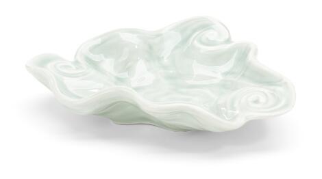 2551/678LyngbyArje Griegst: A porcelain bowl decorated with celadon glaze. Stamp signed monogram, Royal Copenhagen Gallery. L. 19 cm.