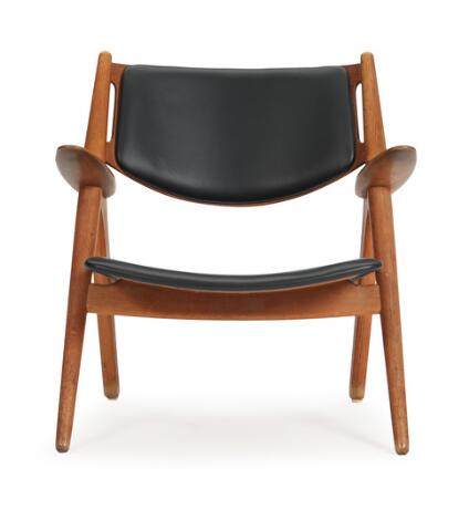 2551/629AarhusHans J. Wegner: “The Sawbuck chair”. An oak easy chair with black leather. Manufactured by Carl Hansen & Søn.
