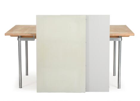 2551/644AarhusHans J. Wegner: "CH 322". A maple dining table with extension and two extra leaves, steel frame. Carl Hansen & Søn, 2001. H. 72. L. 159.5/279. W. 95 cm. (3)