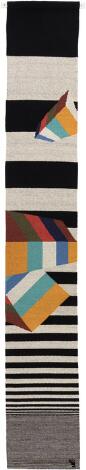 2551/639LyngbyUnknown artist: Tapestry with geometric composition in colors on a black-and-white striped ground. Signed monogram. L. 281 cm. W. 42 cm.