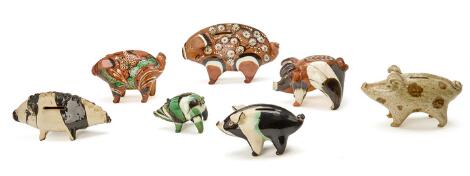 2551/627LyngbyHerman Jørgen Kähler, Grete Kähler, Nils Kähler: Seven earthenware animals in the shape of pigs, six of which are piggy banks. (7)