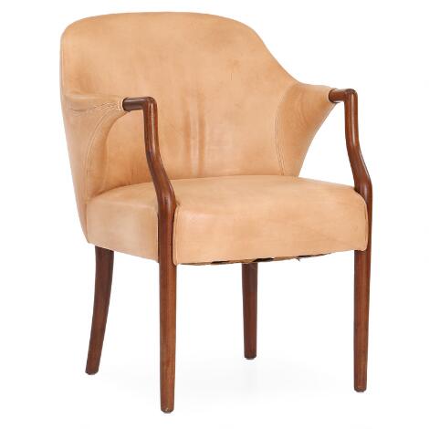 2551/999LyngbyDanish cabinetmaker: Mahogany armchair. Upholstered with patinated, light leather.