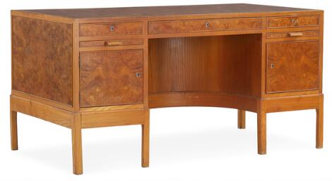 2551/1012LyngbyDanish cabinetmaker: Desk of root wood and elm. Front with drawers, doors and pull-out. Made 1940s.